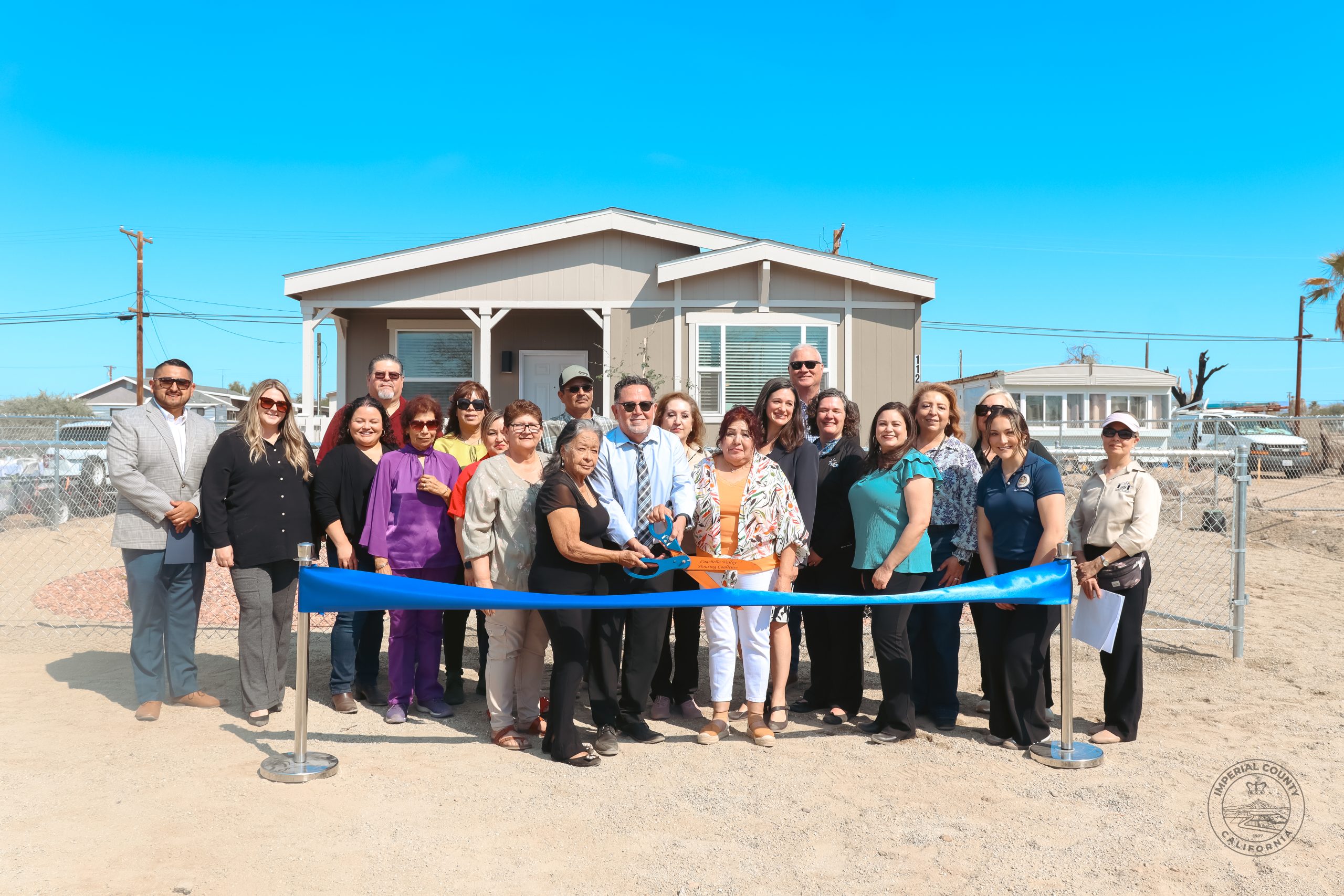 A second ribbon cutting celebrated five newly reconstructed homes in the Niland Colonia, built for families impacted by the devastating June 2020 fires. These homes were made possible through the Community Development Block Grant Coronavirus Relief (CDBG-CV) Program, managed by the Coachella Valley Housing Coalition (CVHC), with Pioneer Affordable Homes, Inc. serving as the prime contractor.